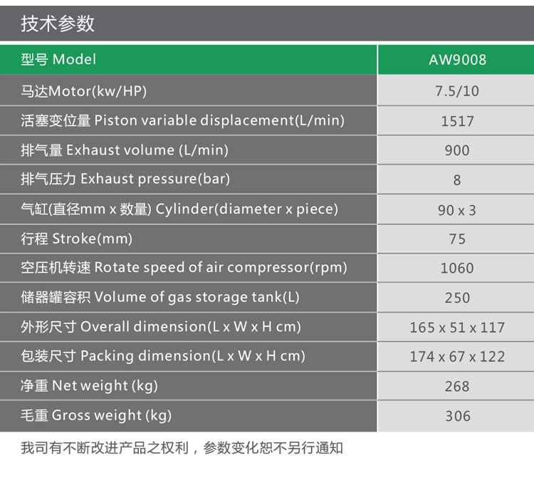 Product name:7.5KW 8bar new AW9008 piston air compressor