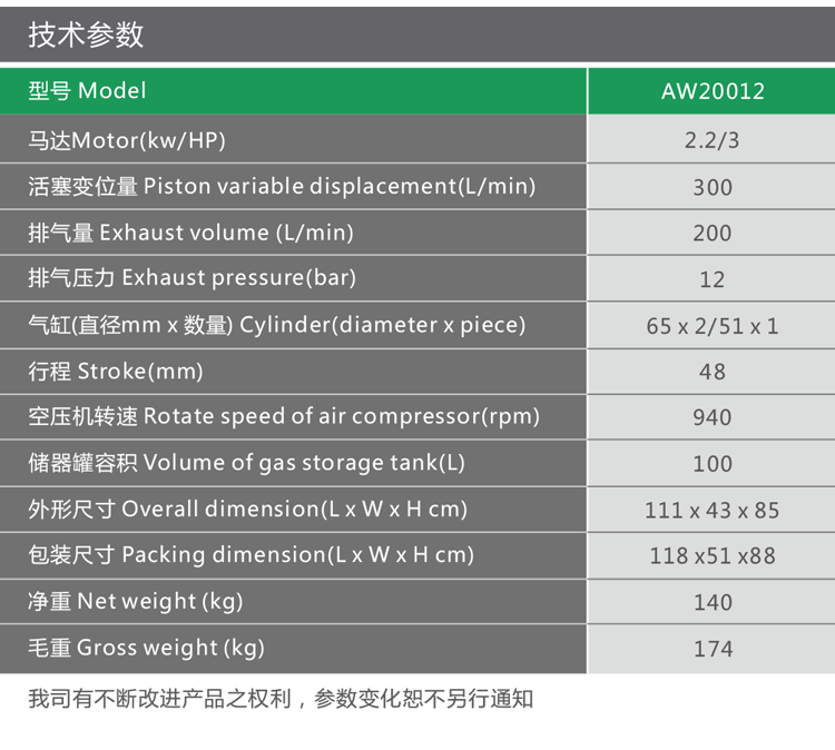 Product name:2.2KW 12bar AW20012 piston air compressor