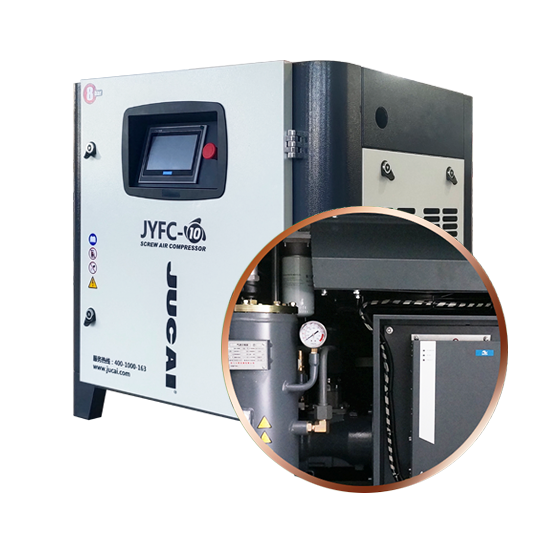 JUCAI螺桿空壓機主機,大轉子低轉速設計,采用先進的螺旋齒型技術,瑞典原裝進口SKF圓錐滾柱軸承,噪音低,能耗低。