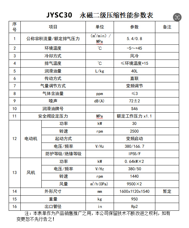 產(chǎn)品名稱:30kW 水平雙級直連永磁變頻空壓機(jī) JYSC30
