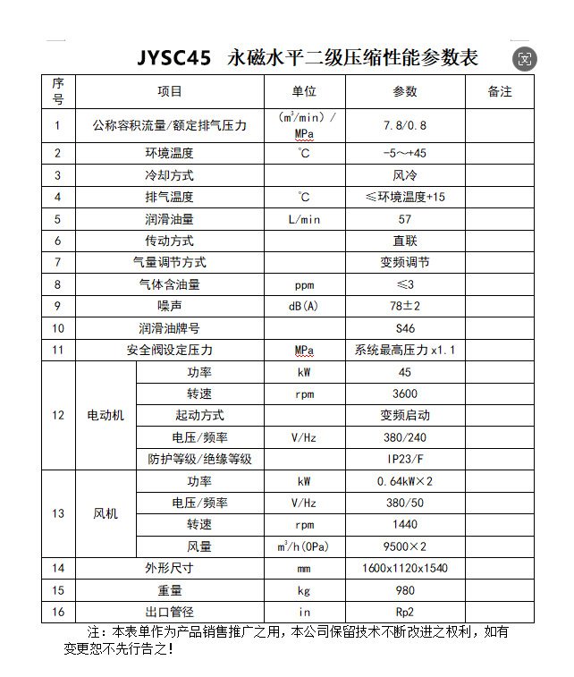 產(chǎn)品名稱:45kW 水平雙級(jí)直連永磁變頻空壓機(jī) JYSC45
