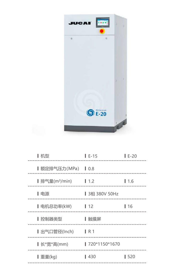 產(chǎn)品名稱:16kW 1.6M3/min 無油渦旋空壓機(jī)E-20 靜音食品飲料醫(yī)療實(shí)驗(yàn)室空壓機(jī)